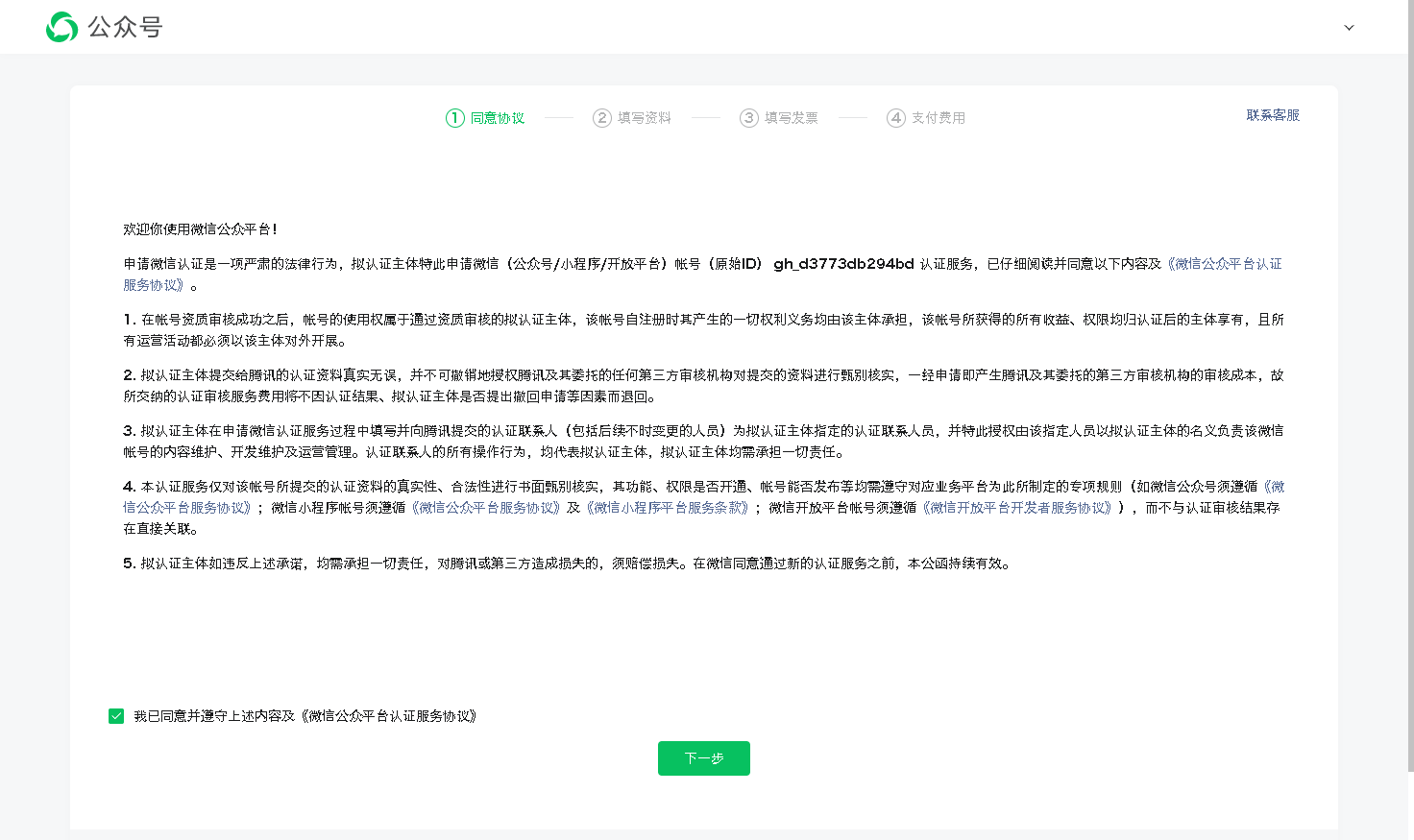 然后按照需求填写企业认证资料信息,(开放平台的认证流程填写的信息与微信公众号申请微信认证一样的流程。此步骤可参考微信认证申请方法)