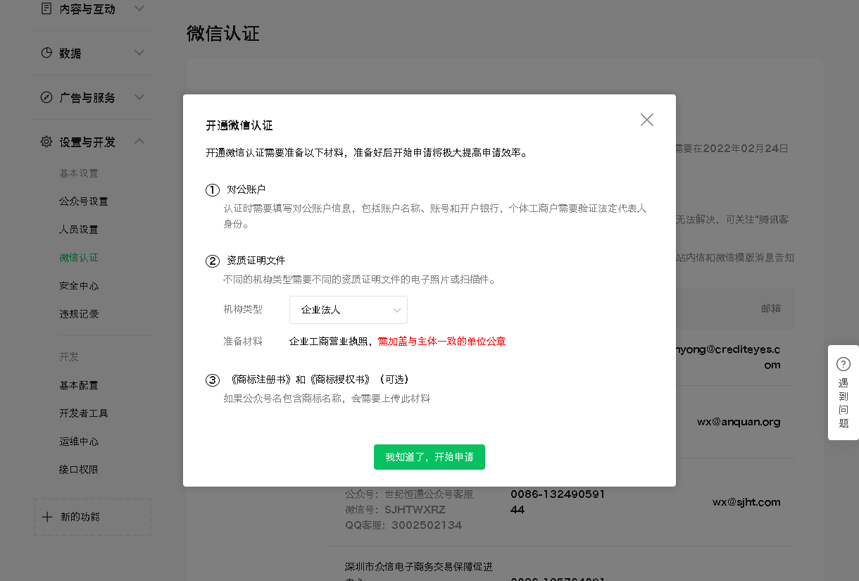 • 微信认证申请方法