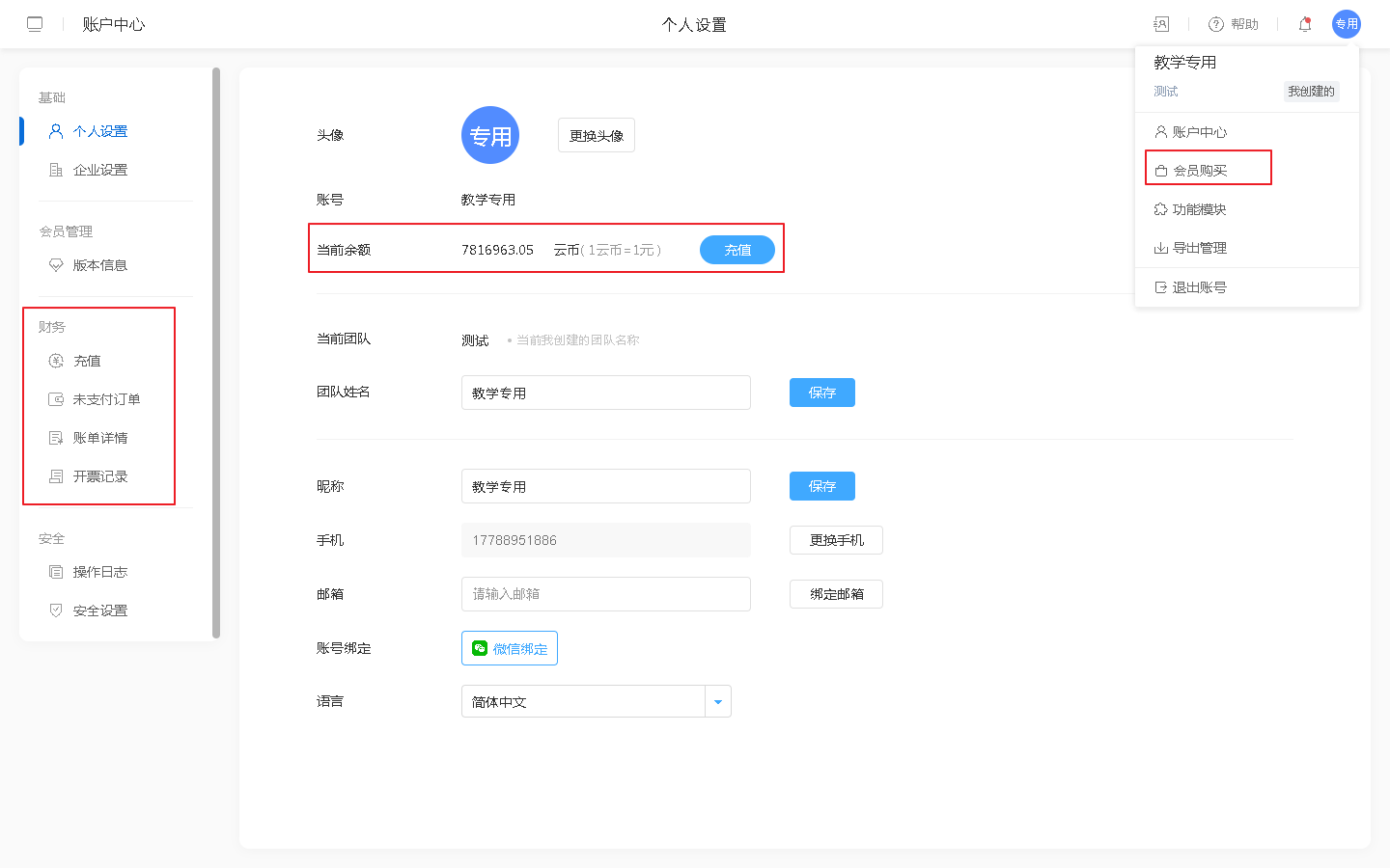• 会员支付设置