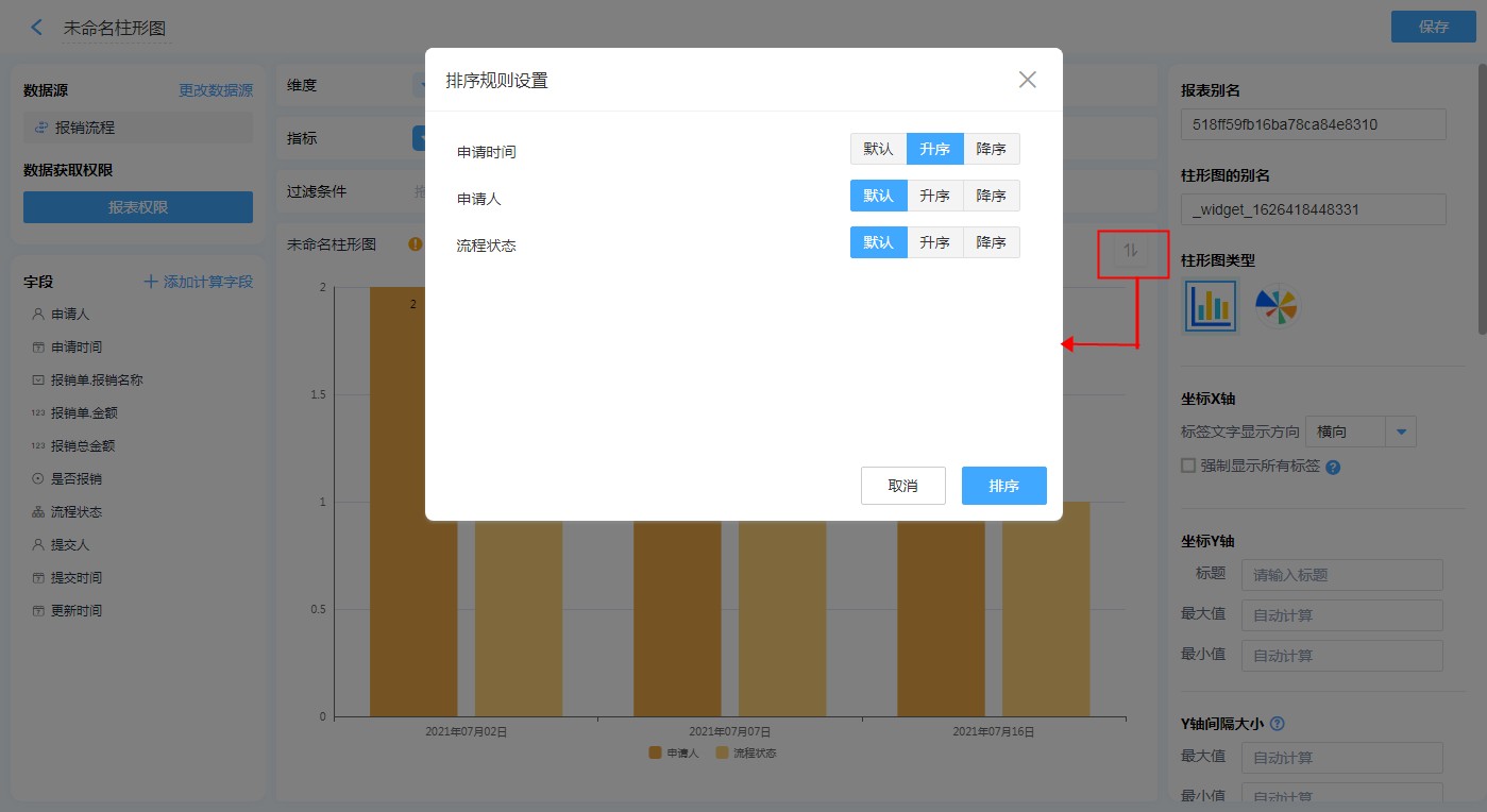 (2)点击图表右上角排序按钮进行排序。