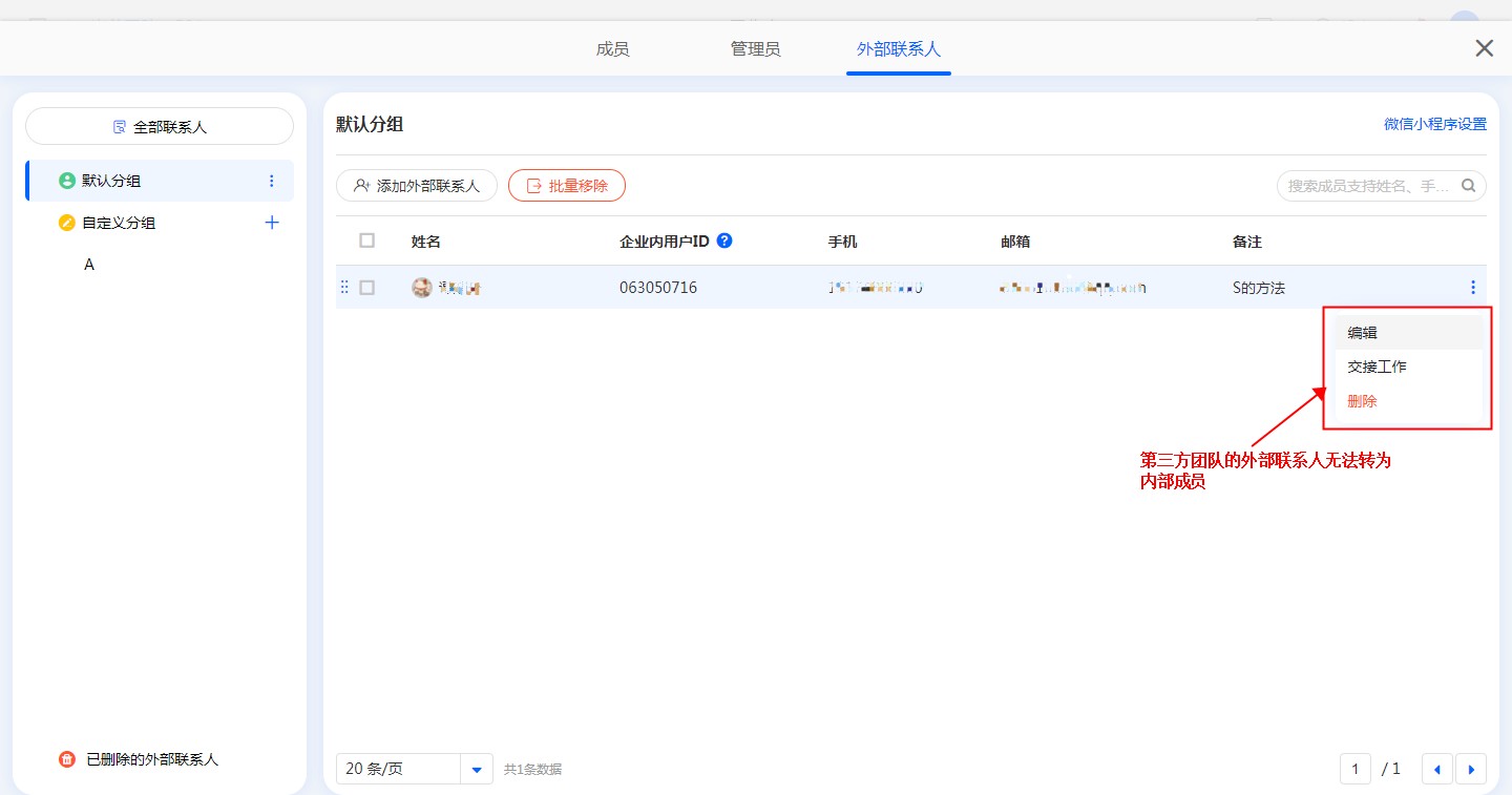 外部联系人受限功能