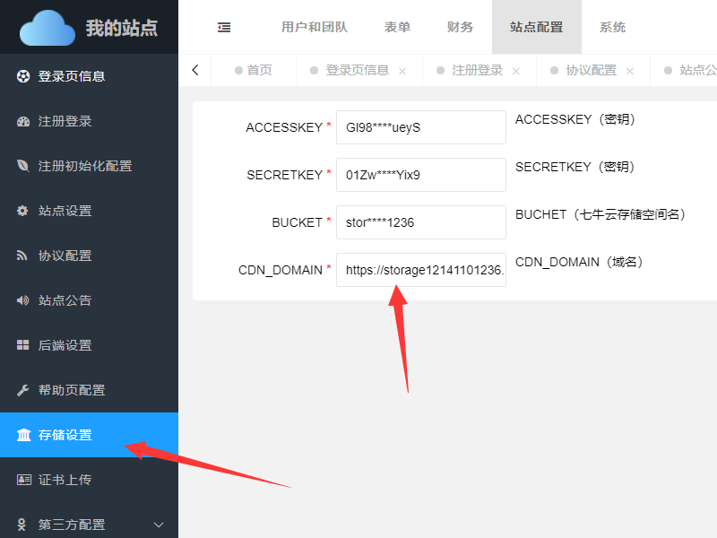 • 在业务域名中添加自己的站点域名和七牛云域名。