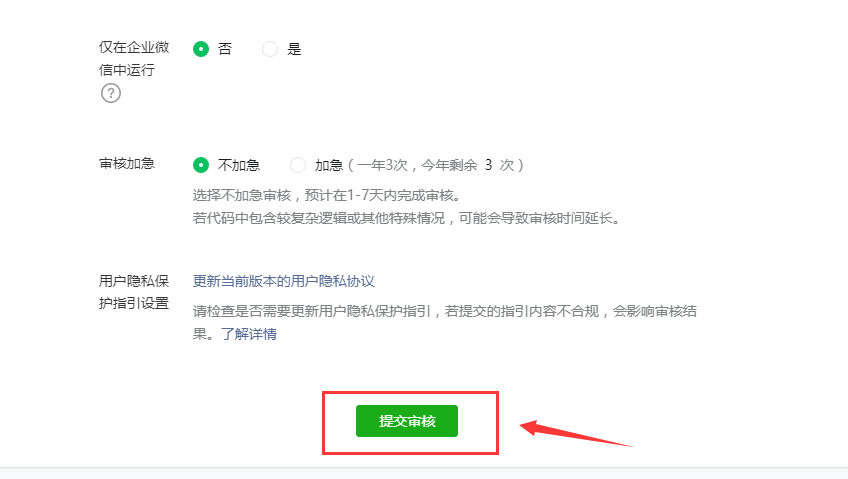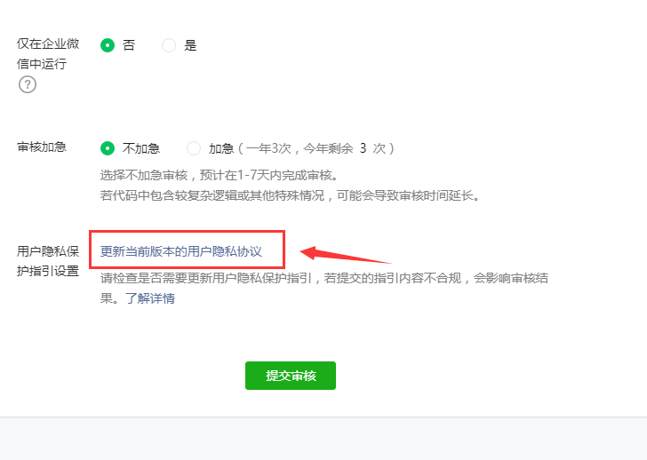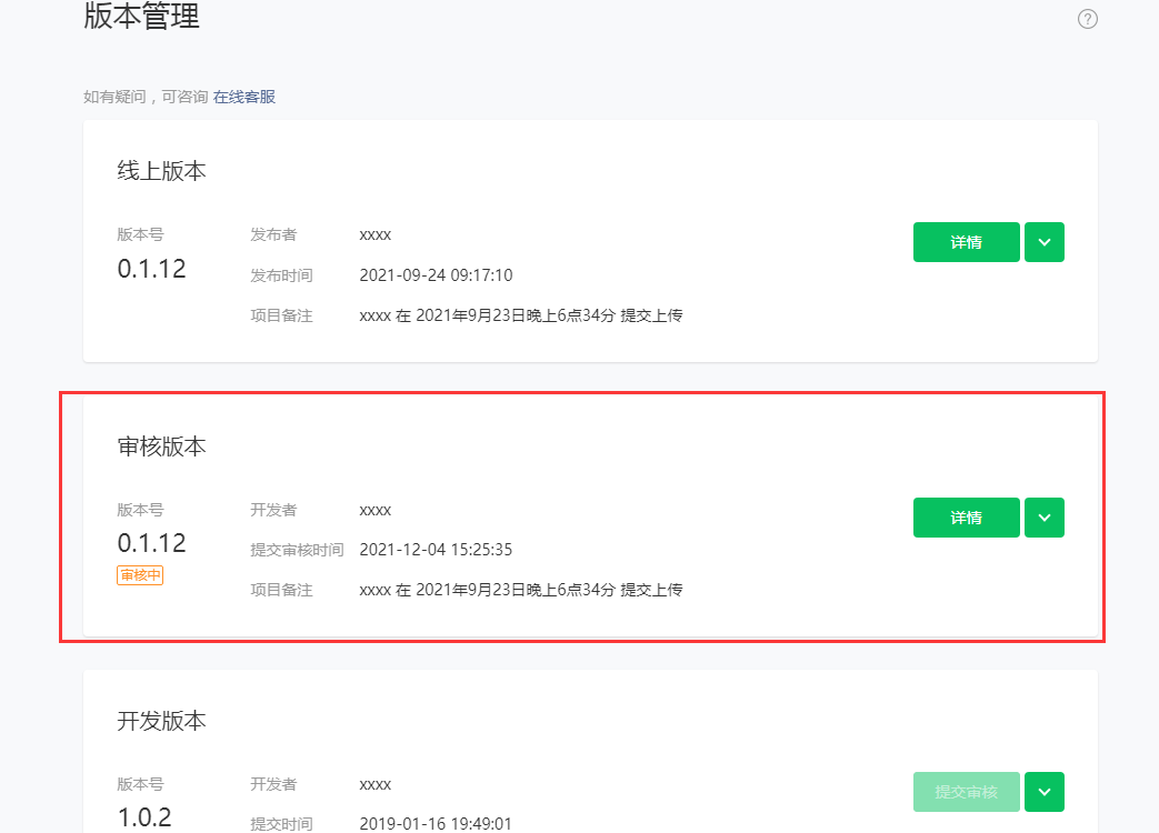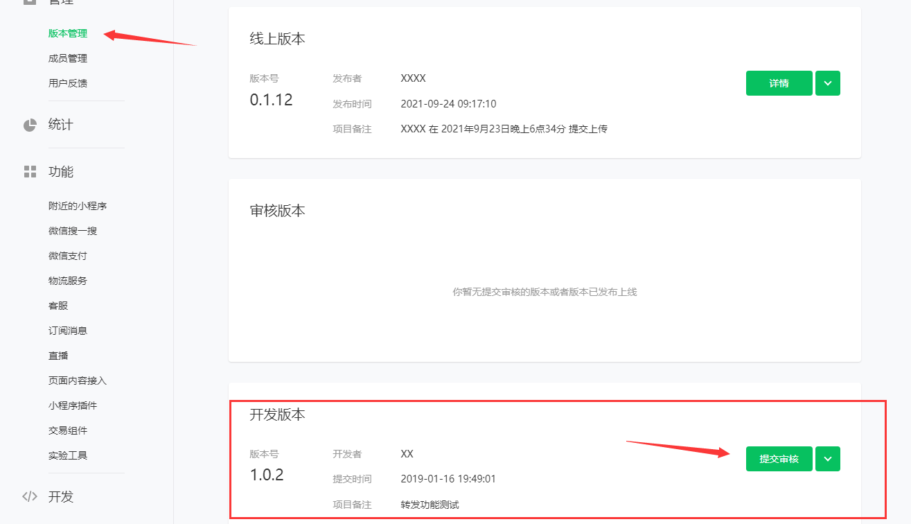 2. 选择版本管理 ,可以看到已提交的版本,点击提交审核