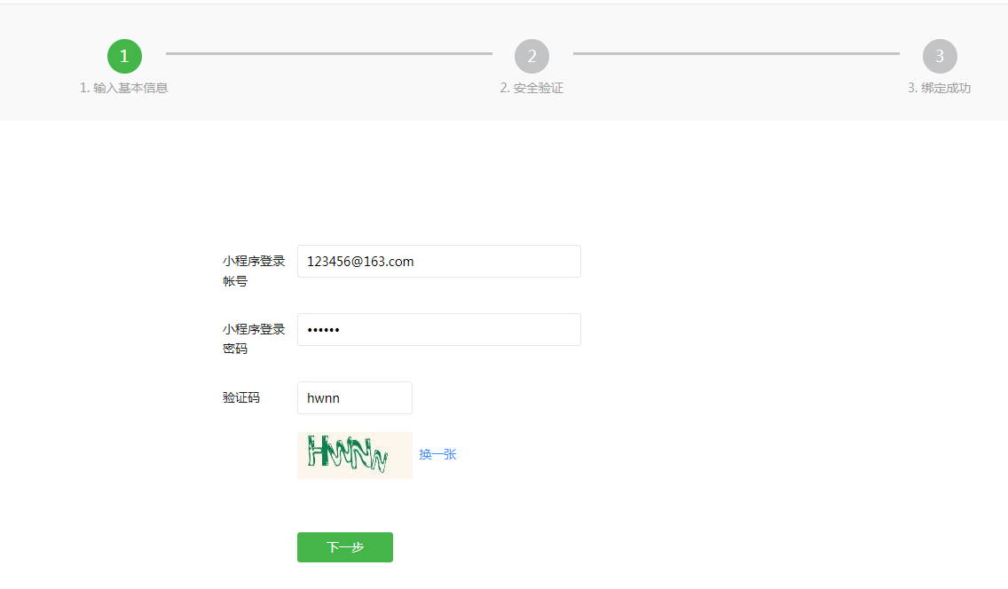 输入账号密码并扫码后验证小程序的所有权,验证通过后即绑定成功。