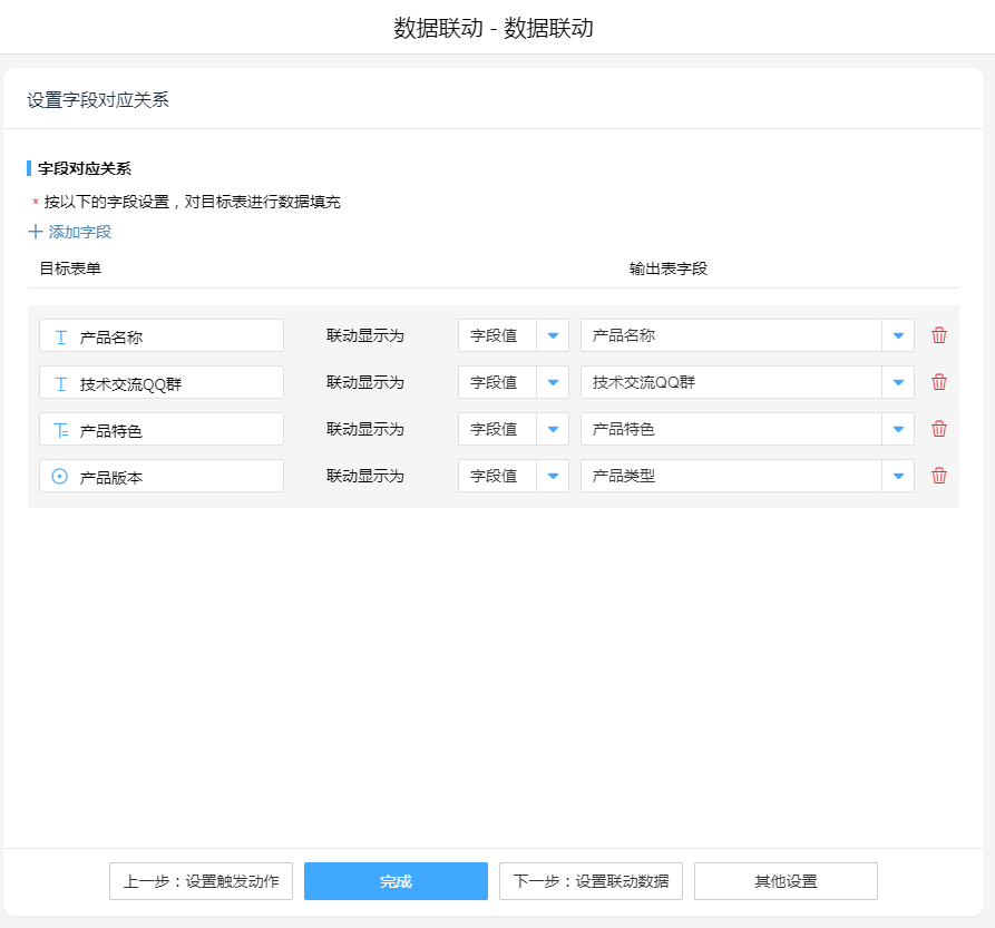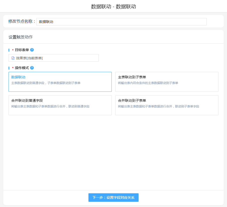 数据关联,将两表字段进行联动。
