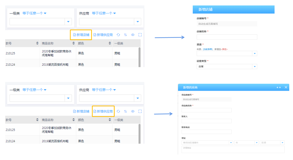 | 一键新增商铺与供应商 |