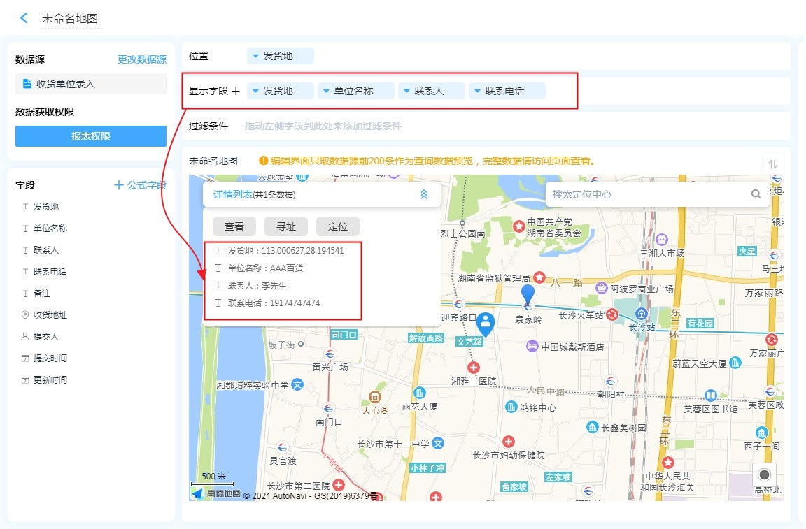 在物流配送管理系统中,借助地图场景报表能够加强订单定时、定点、定量配送,提高配送人员工作效率,减少人工成本。