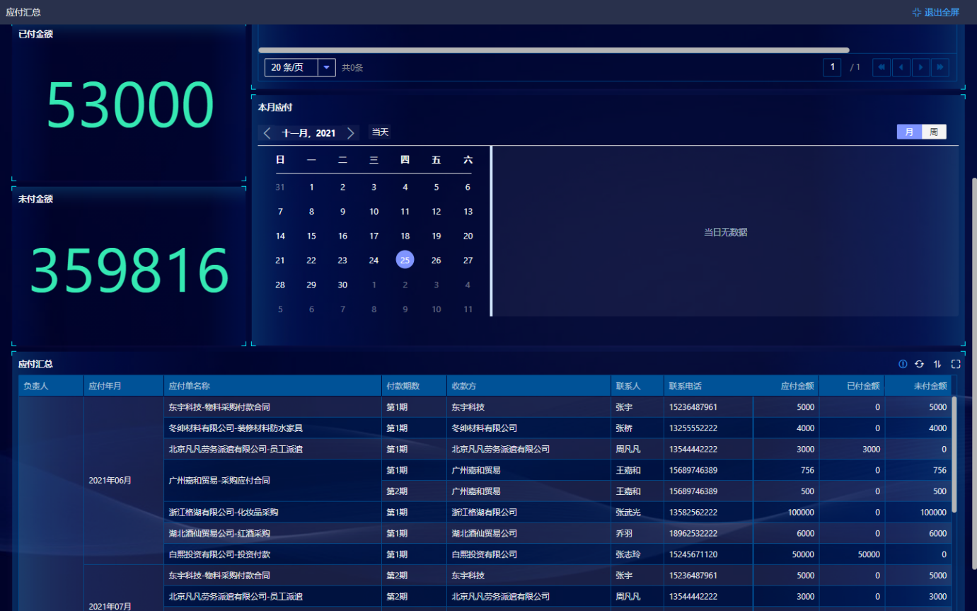 *账款管理:帮助企业随时随地查看当月每天的应收应付款项