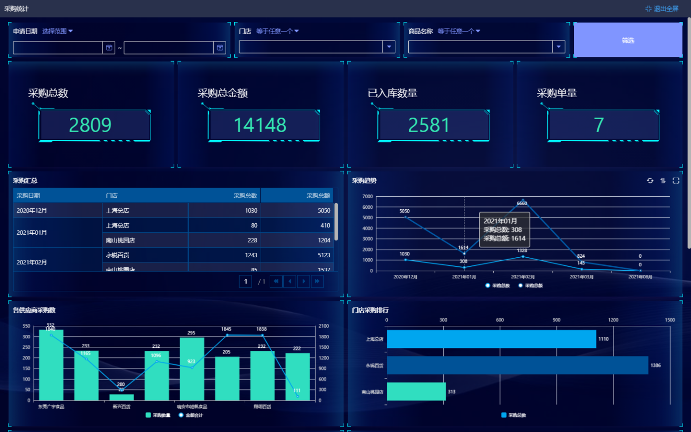 *进销存管理:帮助企业随时了解商品的明细、库存数量、订单走势等关键信息