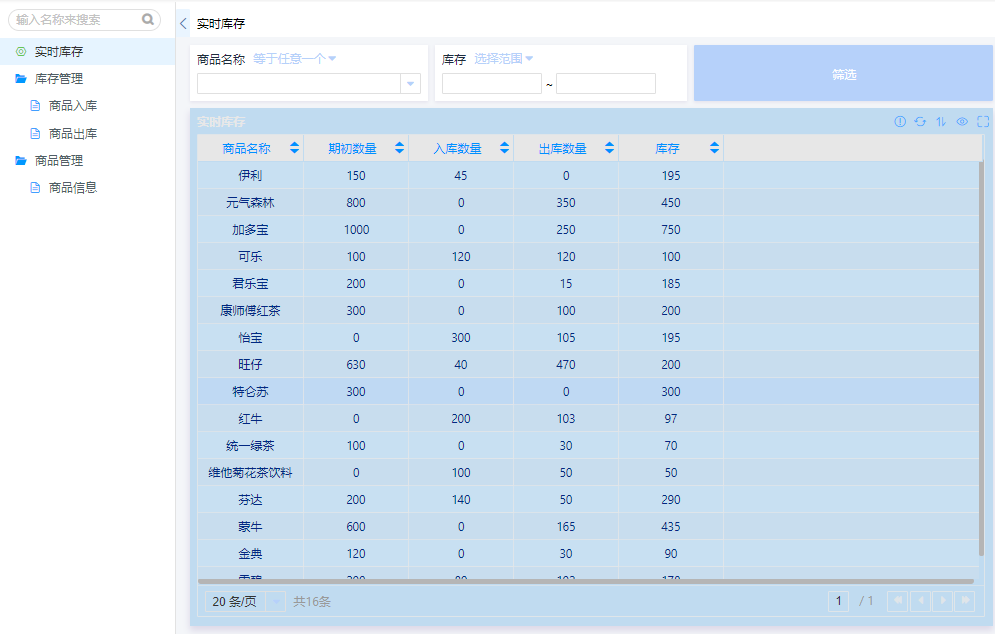 凌云提供的数据视图就能轻松解决这个问题,数据视图可以对一个或多个表单进行数据合并、数据过滤筛选、数据排序、数据关联等操作,然后将处理结果输出为新的数据表。利用数据视图可以将多个数据列表中所包含的大量数据进行汇总并加以分析,从而提炼出有助于决策的信息。如:计算商品库存实现库存管理
