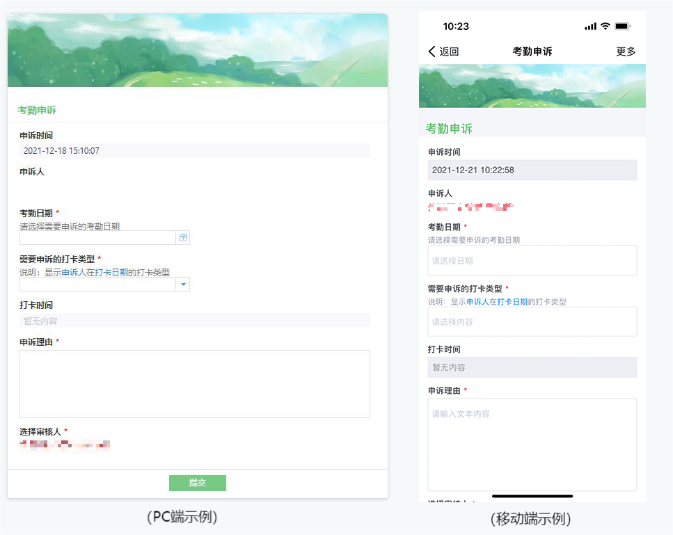 *如统计考勤信息时分享链接给申诉成员填报申诉表单
