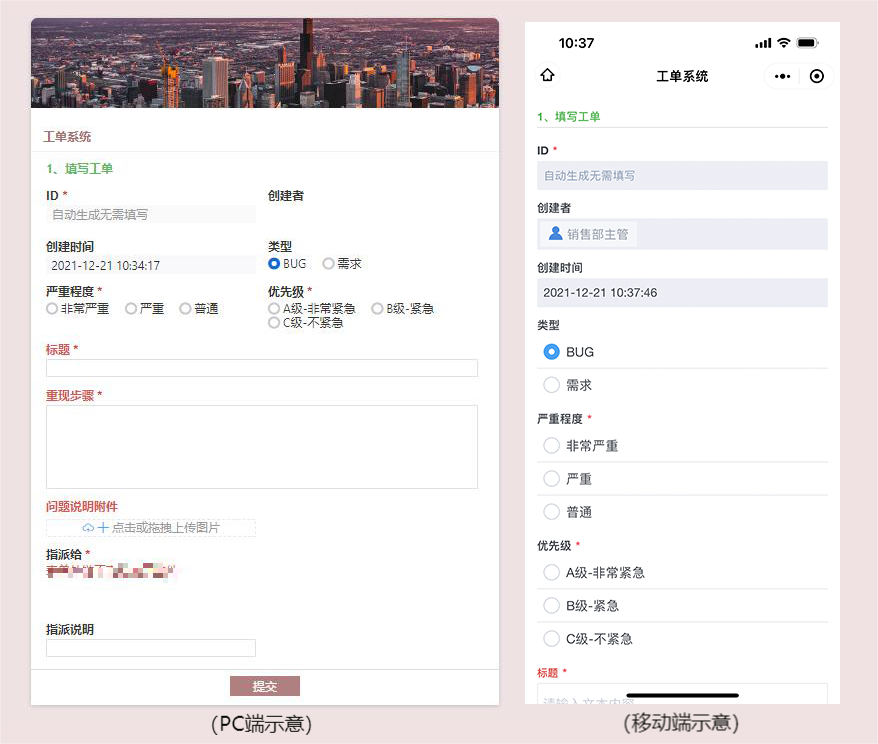 非团队成员通过访问链接即可直接填表提交,无需登录或加入团队。如将售后反馈表单分享给客户,客户即可直接填报反馈表: