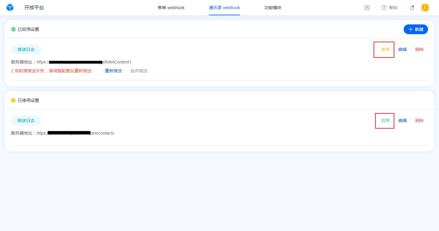 通讯录webhook管理