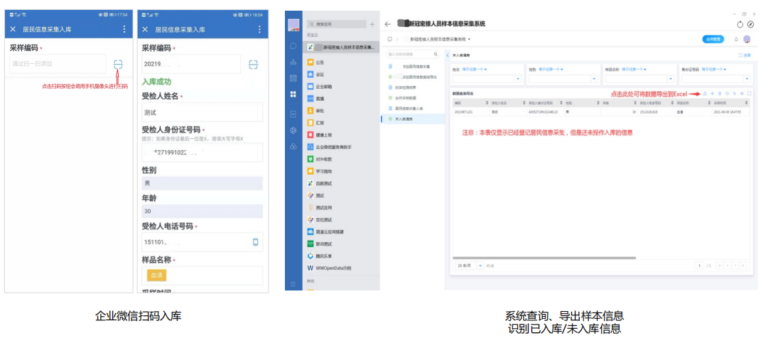 整套系统基于企业微信组织架构,可对组织架构进行管理,人员的调度实现高效管理;改变原先需手动、多次录入信息的方式,通过企业微信快速收集受检人信息,并实现自动核验、分区统计。