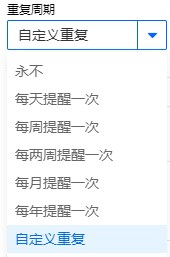 • 重复周期:选择永不,则只提醒一次,不再重复提醒;选择其他重复周期,按照选中周期重复提醒。