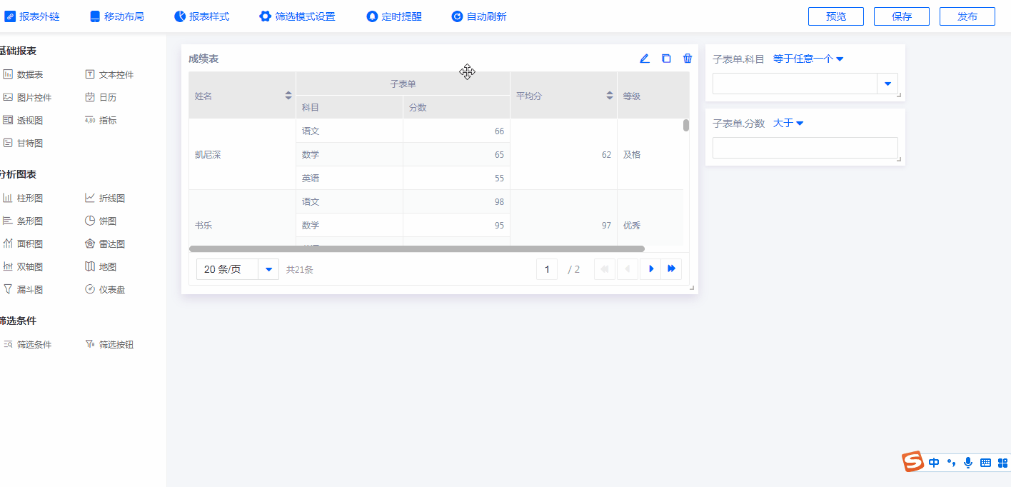 如,成绩表有科目和分数2个筛选条件: