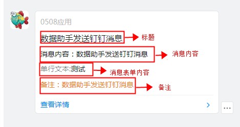 注意:收到的测试消息中,普通字段会以字段名称代替。