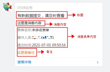 • 消息内容:支持自定义文字,以及添加表单字段。