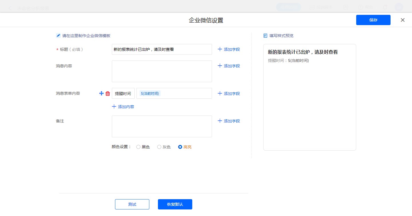 • 报表定时提醒设置企业微信消息模板