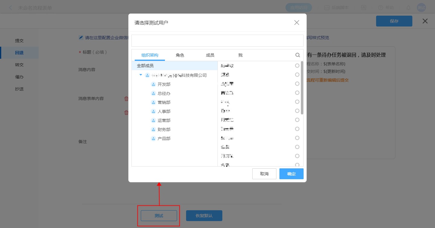 点击测试,选择收件人,确认即可将当前消息模板内容发送给此收件人。