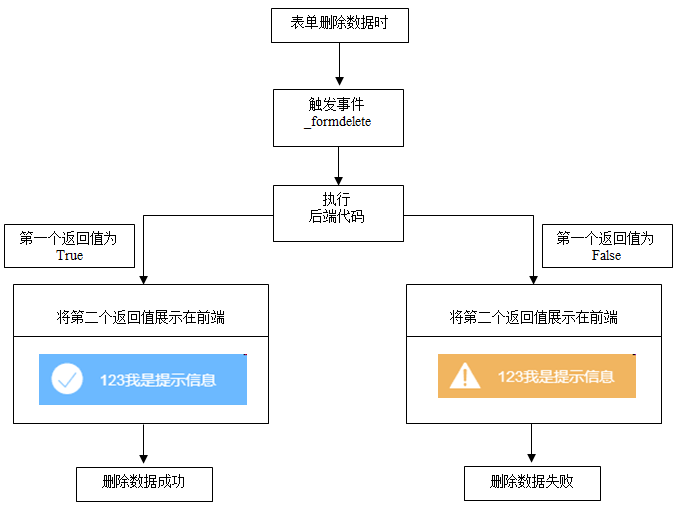 | 没有返回 | 默认True:通过删除操作 | 默认为空,为空无提示 |