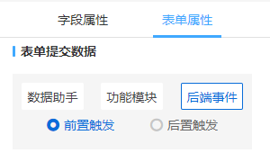 当表单提交数据时,在提交数据前或在提交数据后触发_formsubmit事件。默认为"前置触发",详情请见后面的事件触发示意图 。