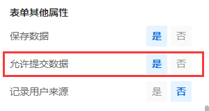 ③、表单其他属性里“允许提交数据”选择为“是”(默认:是)