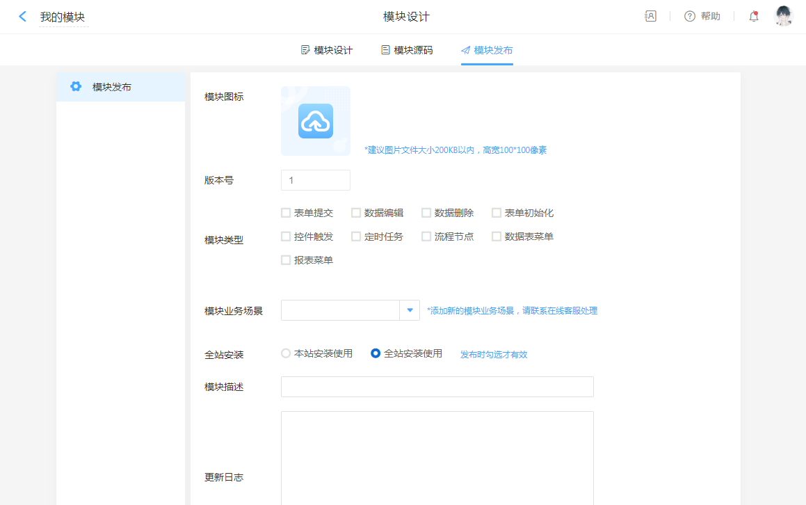 | 是否全站安装 | 即是否可以全站用户安装,选择否即只可自己(私有云)安装使用。 |