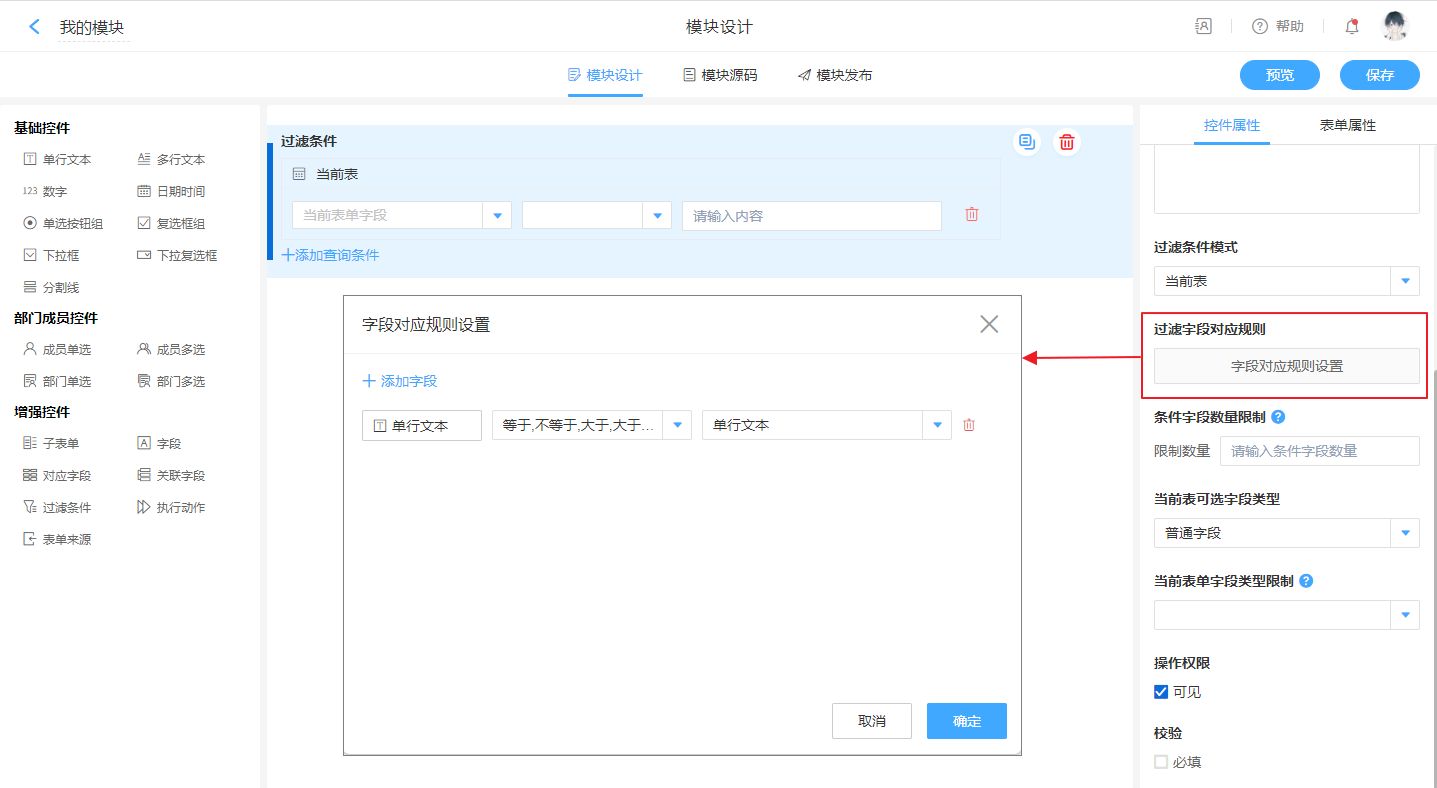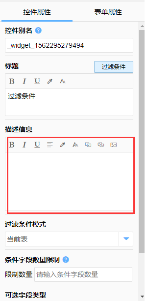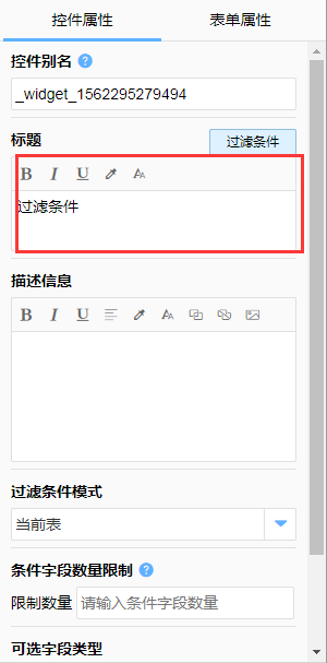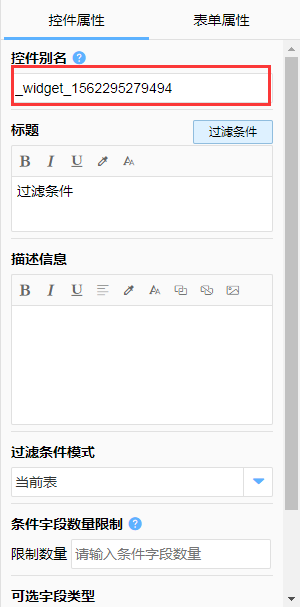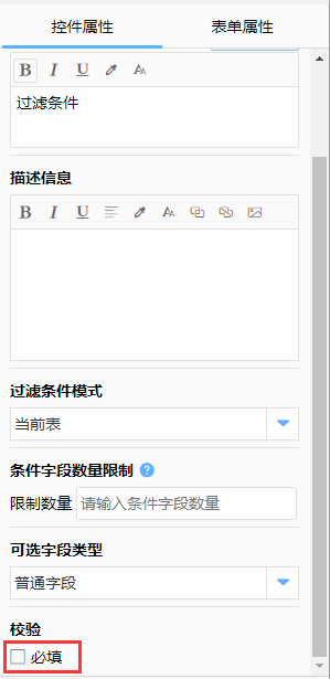 对过滤字段可以关联的其他字段进行限制,避免选择不被支持的字段(默认为同类型的字段,可以选择包含多个类型)。