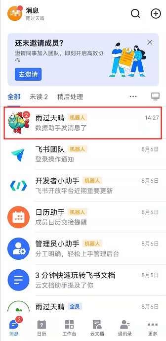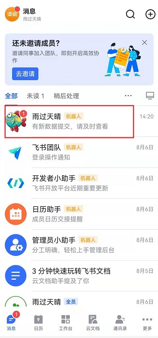 用户在飞书上收到消息后,可以根据用户权限进行相应的增删改查操作。
