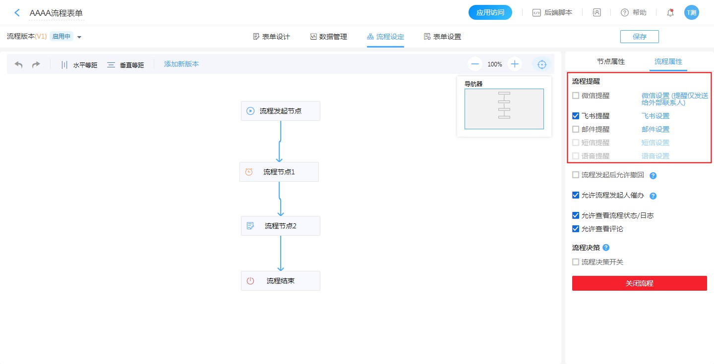 当有外部联系人参与流程流转或者需要接收表单消息时,可以勾选微信提醒方式,需要注意的是,飞书团队模式下,微信消息只能发送给外部联系人,内部成员就算绑定了微信也不会收到微信消息。
