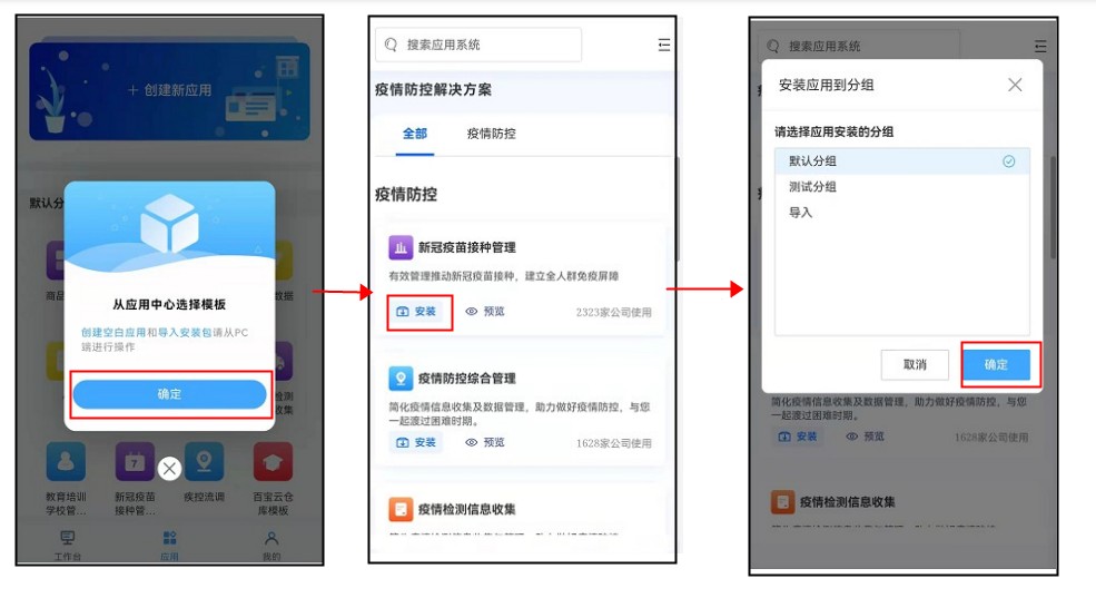 在移动端还可以进行应用的创建,但是和PC端的区别是:移动端无法创建空白应用和导入安装包,只能安装已有的应用模板。