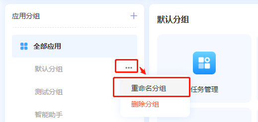用户可以通过在工作台左侧「应用分组」处点击+按钮创建新分组。