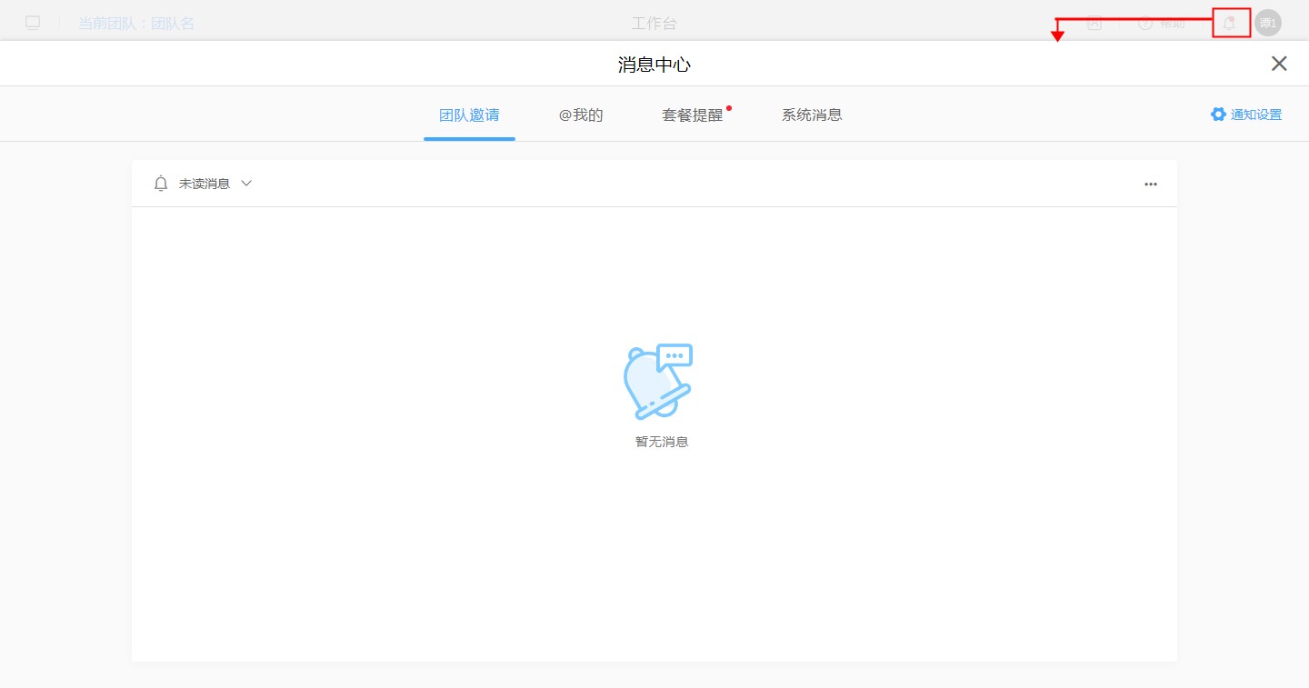 现在消息管理中的消息包括【系统消息】、【套餐提醒】、【团队邀请】、【@我的】这4种类型,不同的消息类型对应的不同的通知信息。
