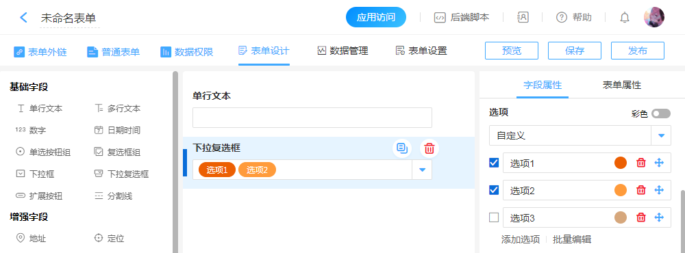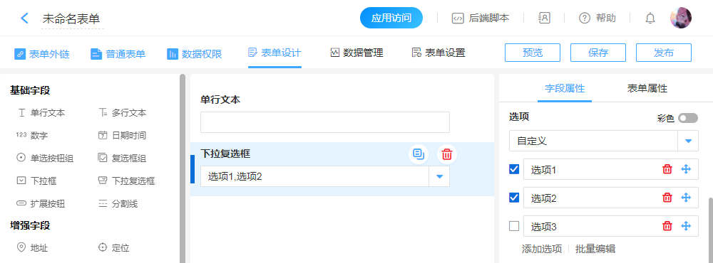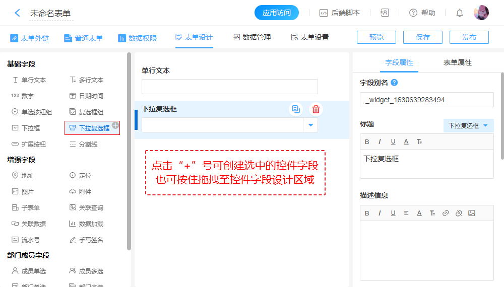 创建字段、表单预览