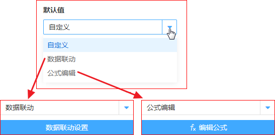 指在访问表单时,该控件初始默认填入或选定的值;可设置自定义、数据联动、公式编辑。