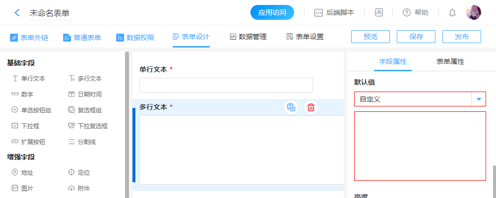 - 如果“多行文本”属于子表单内的控件,则无法设置此属性。