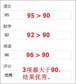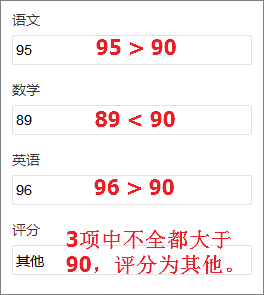 评分为其他,三项数据只要其中一项或者多项小于90分