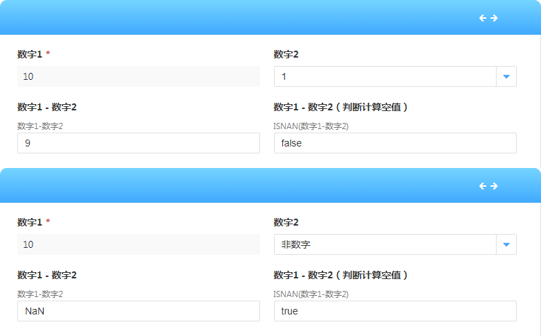 非数值参数进行四则运算,计算失败,结果为“NaN”,非数值。