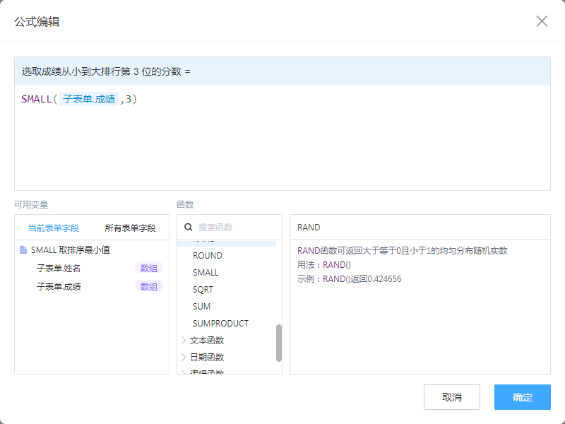 一般用于子表单中,判断哪一行数值排行最小。