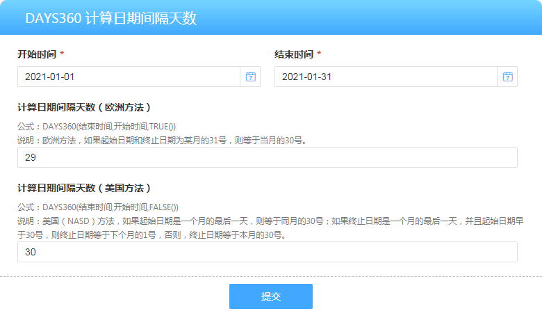 计算日期间隔天数。