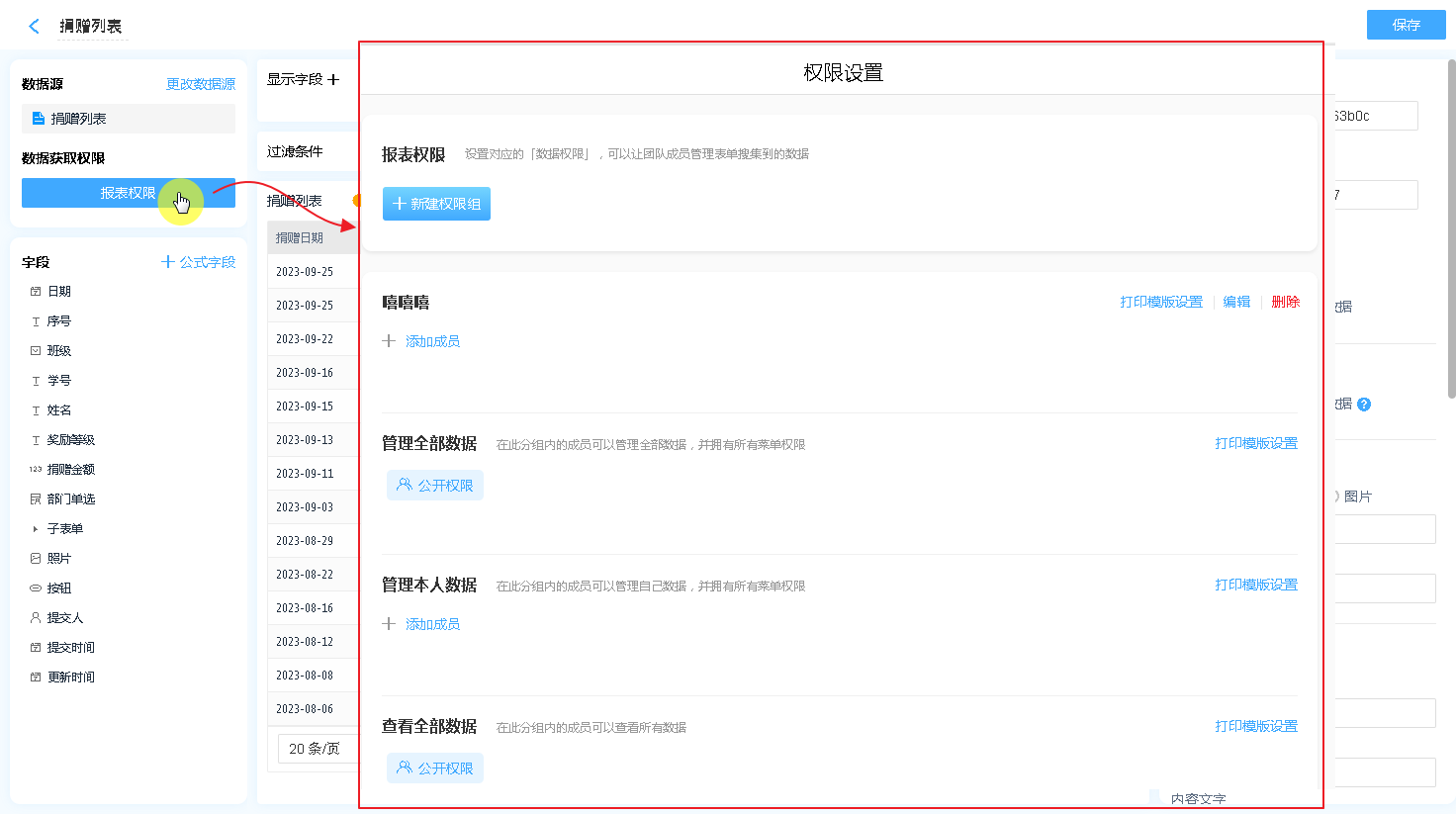 报表权限是指该报表的数据哪些人可以操作报表的数据,分别有什么操作权限。