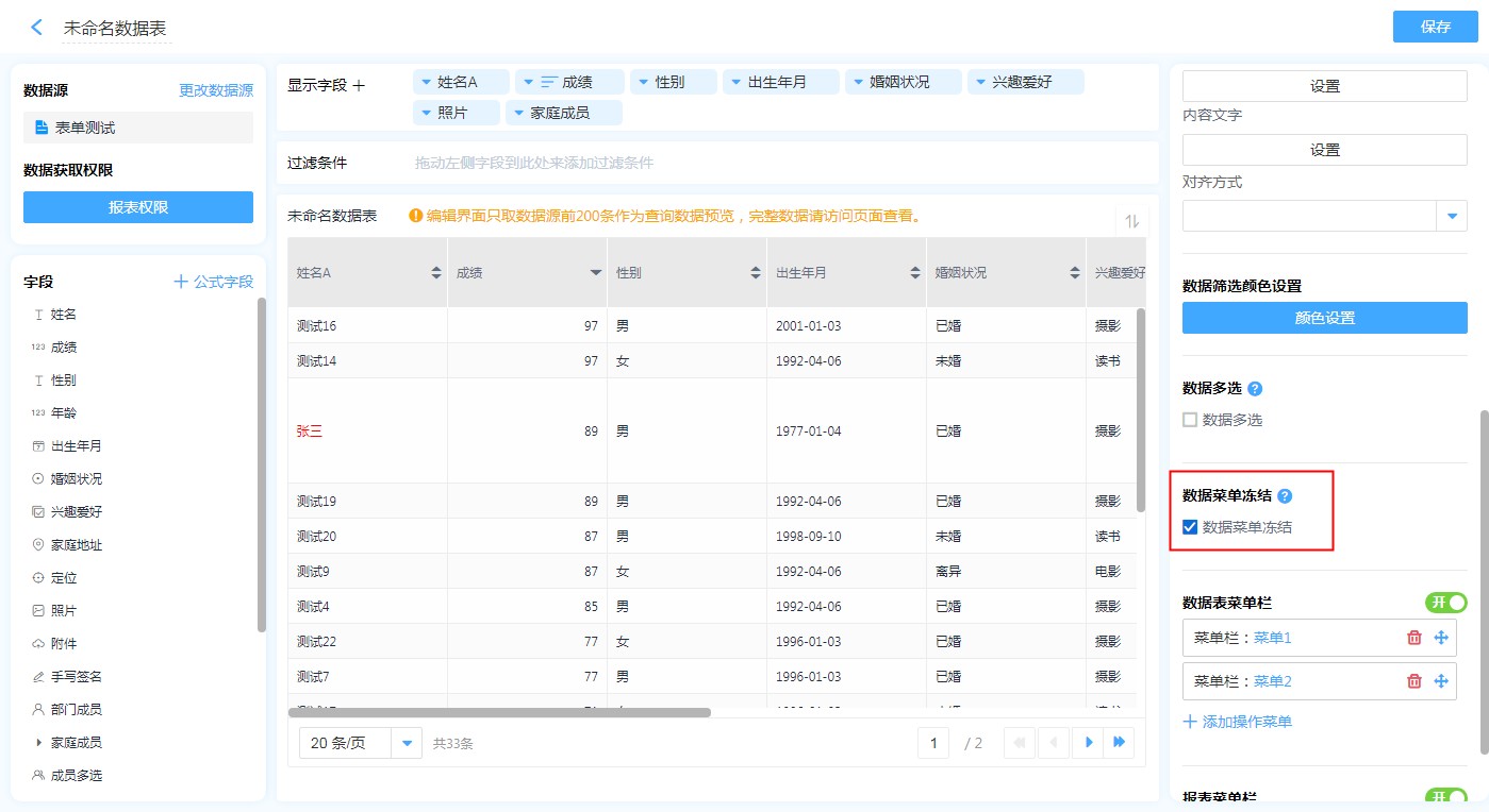 除了以上基础的设置,数据表还支持如下高级功能的设置