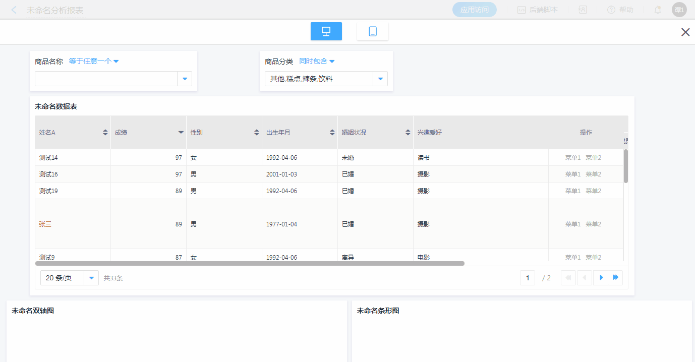 数据表适合任何场景,尤其适用于需要进行复杂交互的场景,如:运营分析系统中,商品销售查询和商品销售详情表单中就利用数据表的功能,实现了复杂交互场景的实现。