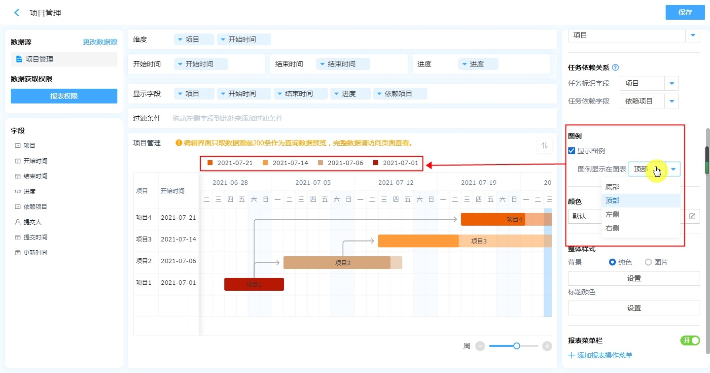 系统支持自定义图例是否显示,以及图例显示在图表的位置,可选择底部、顶部、左侧、右侧。