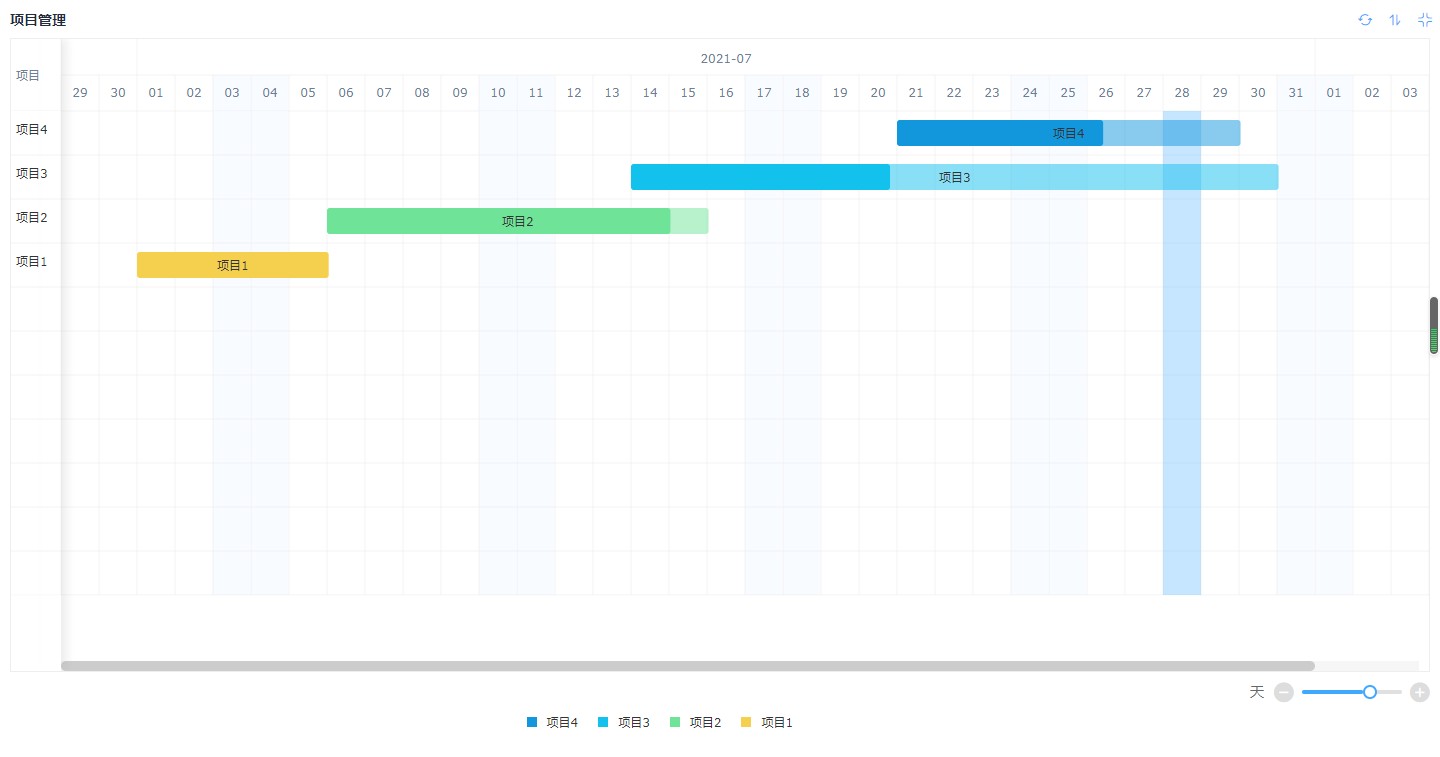• 可以对甘特图显示的内容进行可视化手动调整(如:调整维度和图表区域的宽度),调整结果不保存。