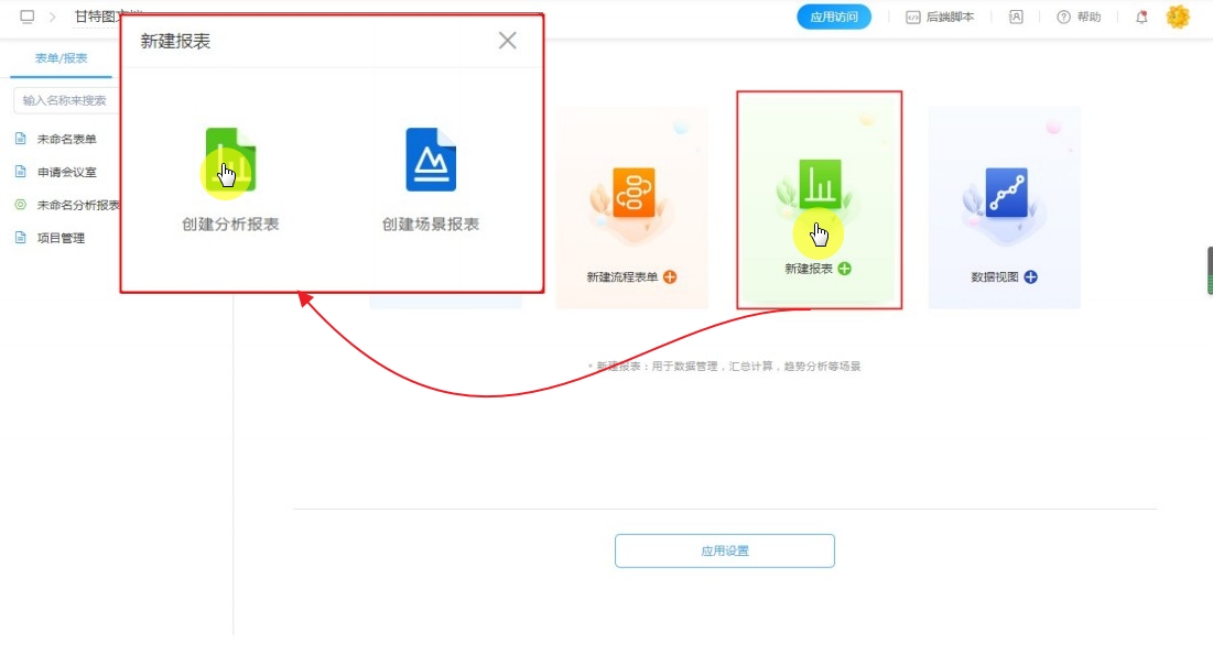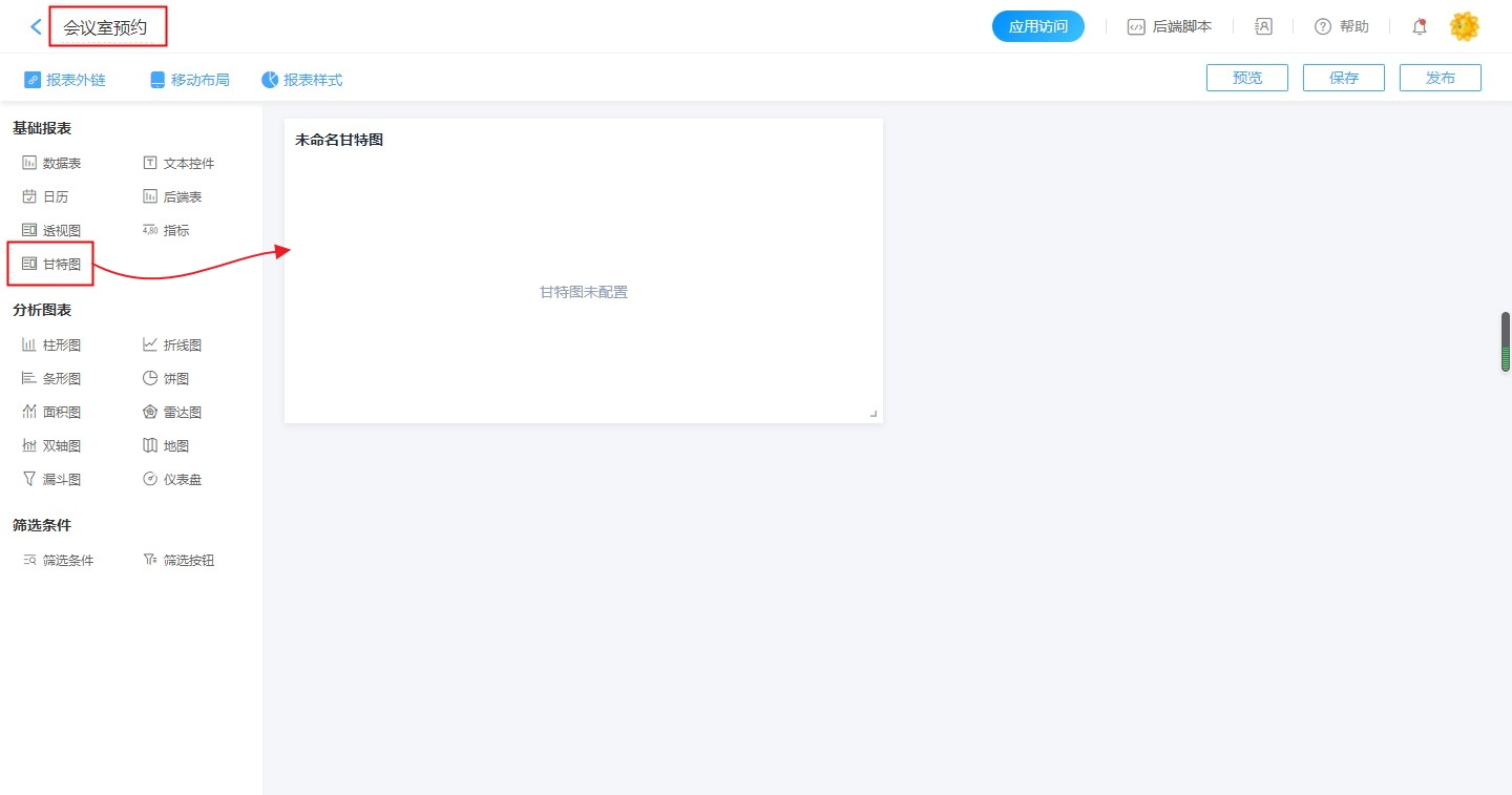 被发布的成员点击报表,可以看到刚刚设置的甘特图,并使用甘特图。 具有相关权限的成员可以: