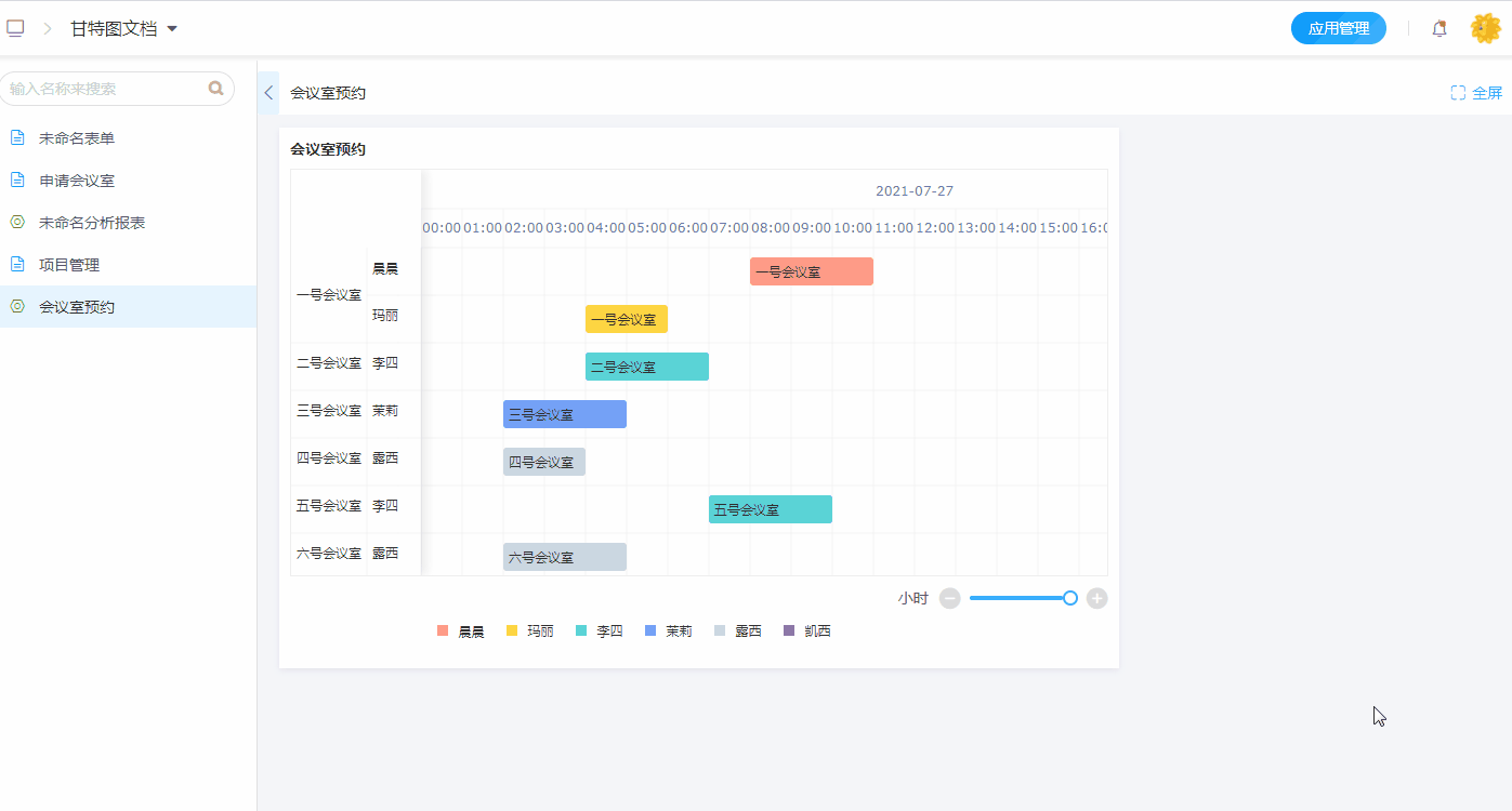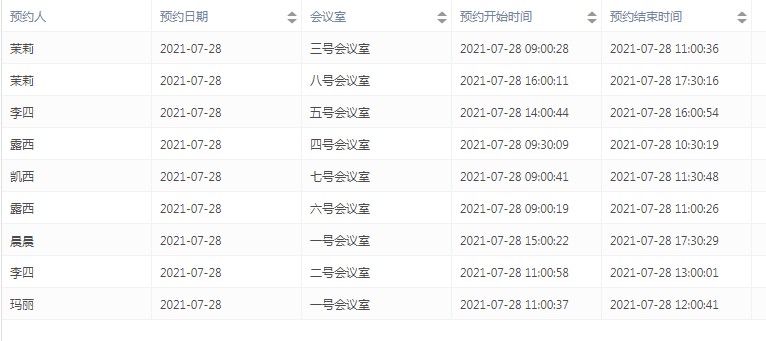 设计如图所示的会议室预约表单,发布给成员进行会议室预约。