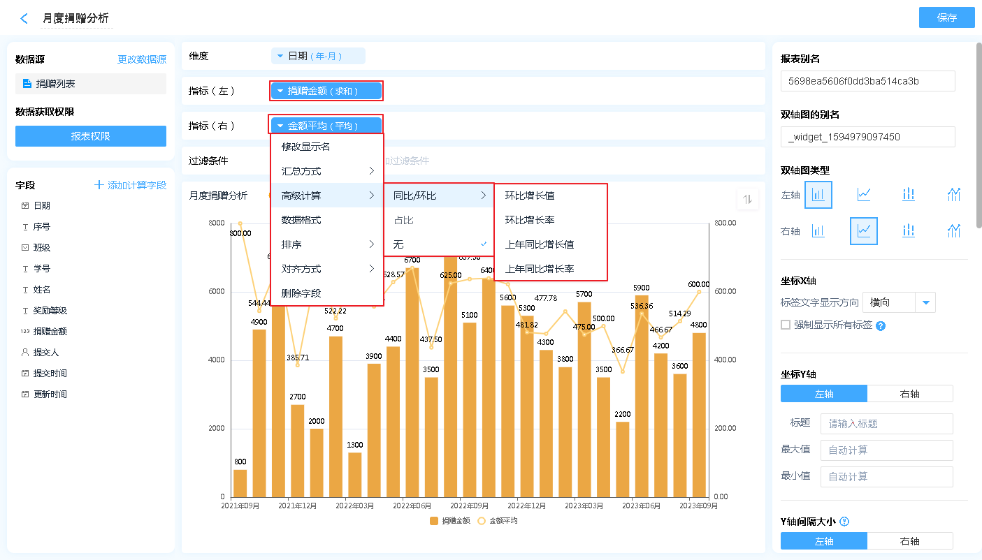 • 排序:支持按照指定的格式对双轴图内的数据进行排序[默认为数据创建时间]