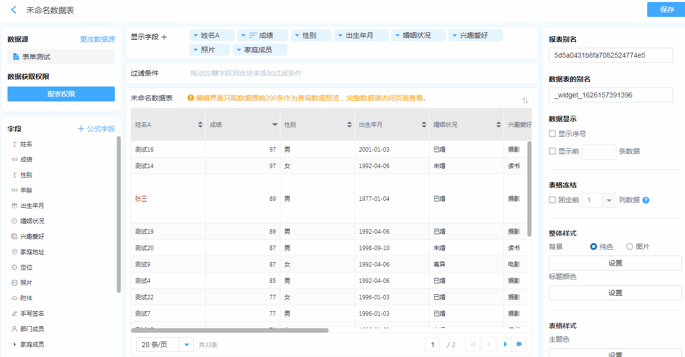 若设置了过滤条件,则报表中只出现满足条件的数据。